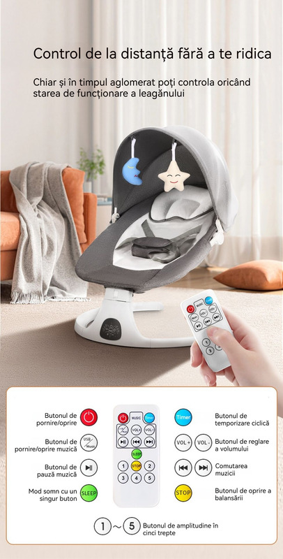 Nume Articol: Leagan Electric Gri Bebelusi Bluetooth, Muzica, Senzor de Miscare Balansoar Multifunctional