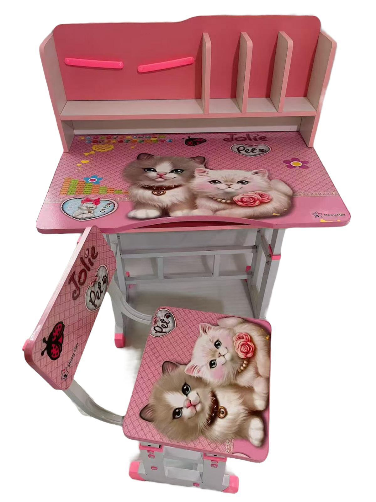 Nume Articol: Se Birou Multifunctional Reglabil Scaun Ergonomic pentru Copii Design Pisici