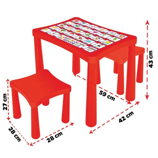 Măsuța are un design ergonomic , o înălțime reglabilă cu 5 cm , și oferă o suprafață generoasă de lucru. Cele două scăunele incluse sunt confortabile, stabile și sigure pentru copii, fiind potrivite pentru grădinițe, creșe, afterschool sau acasă.