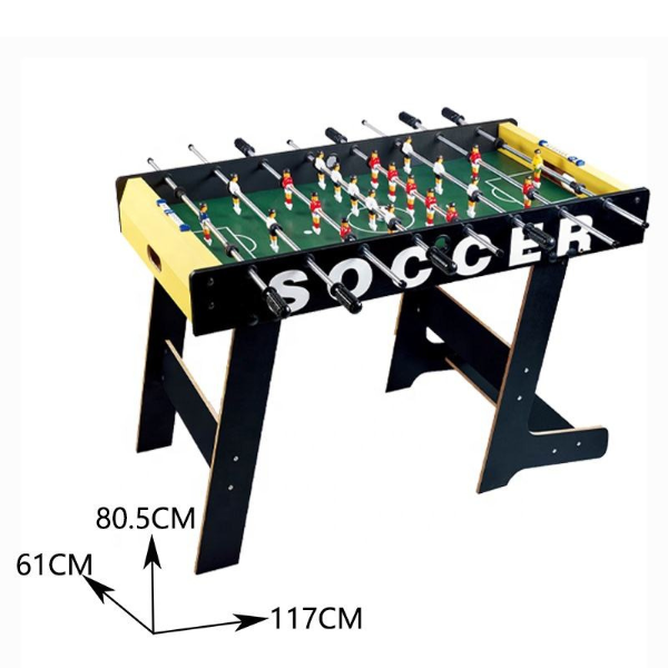 Masă de fotbal pliabilă din lemn, ideală pentru copii și adulți. Construcție solidă, mânere rotative 360° și jucători detaliați pentru o experiență realistă de joc. Potrivită pentru joacă acasă, camere de copii sau spații de recreere.