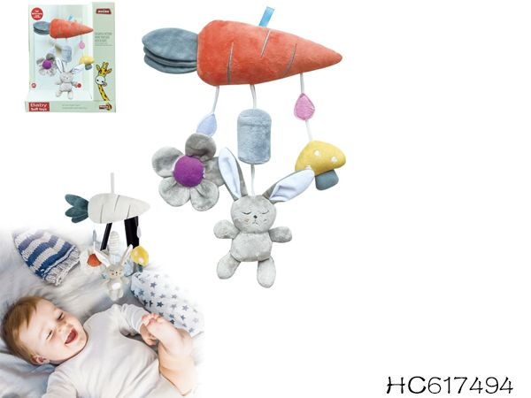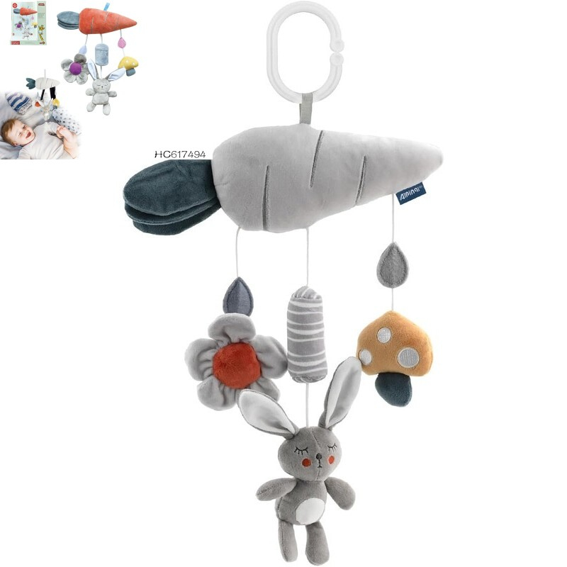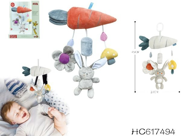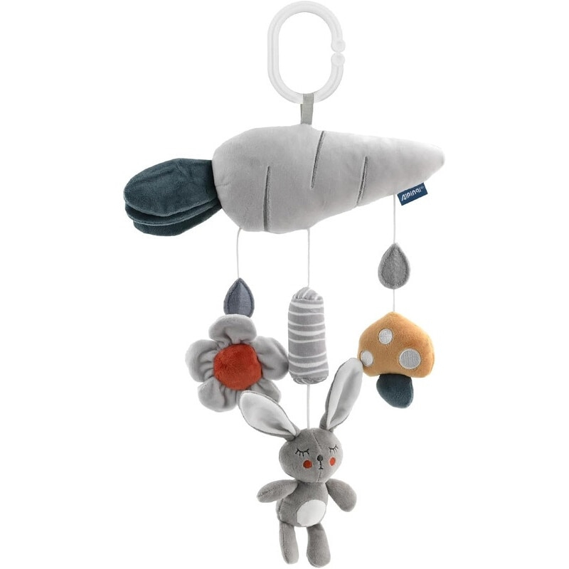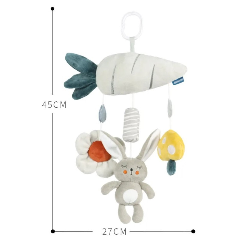 Nume Articol: Jucarie din Plus Zdranitoare de Agatat Iepuras cu Morcov, Sunete Interactive, Dentitie, Texturi Senzoriale