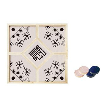 Tabla de joc este realizată din lemn , iar pucurile sunt rezistente și sigure.