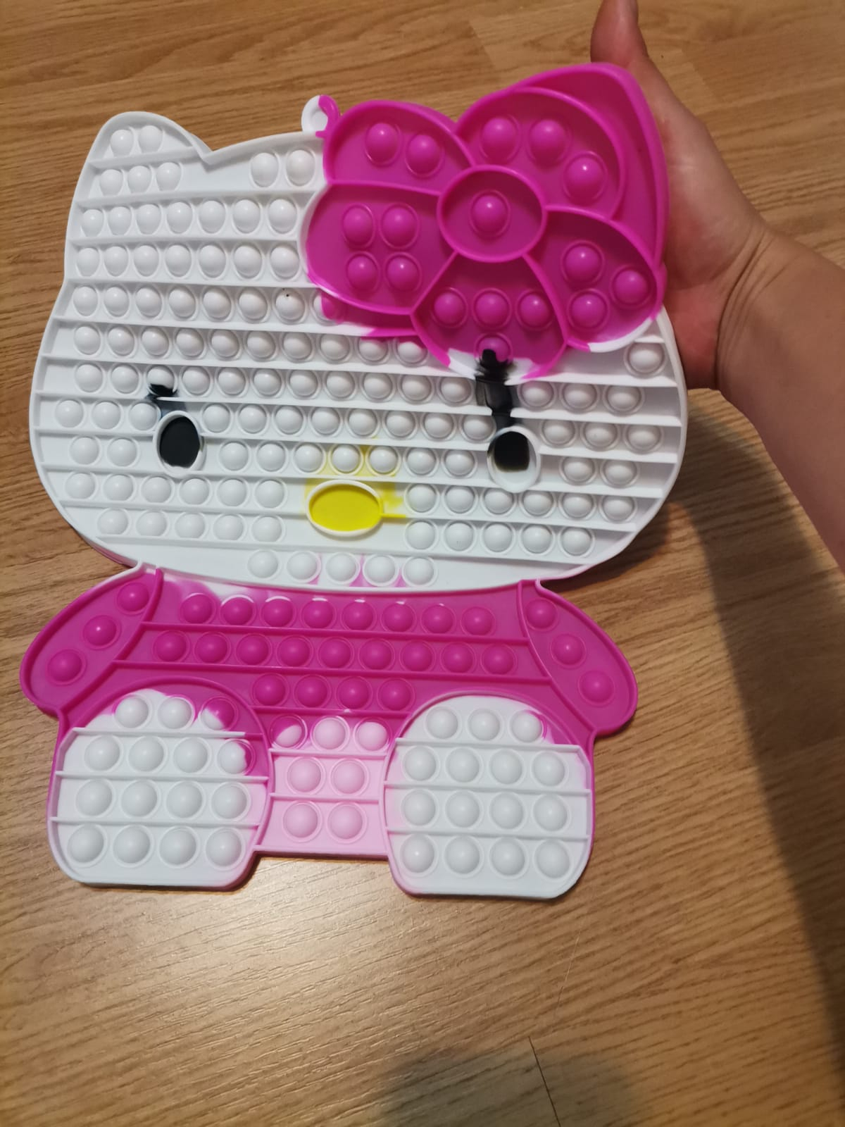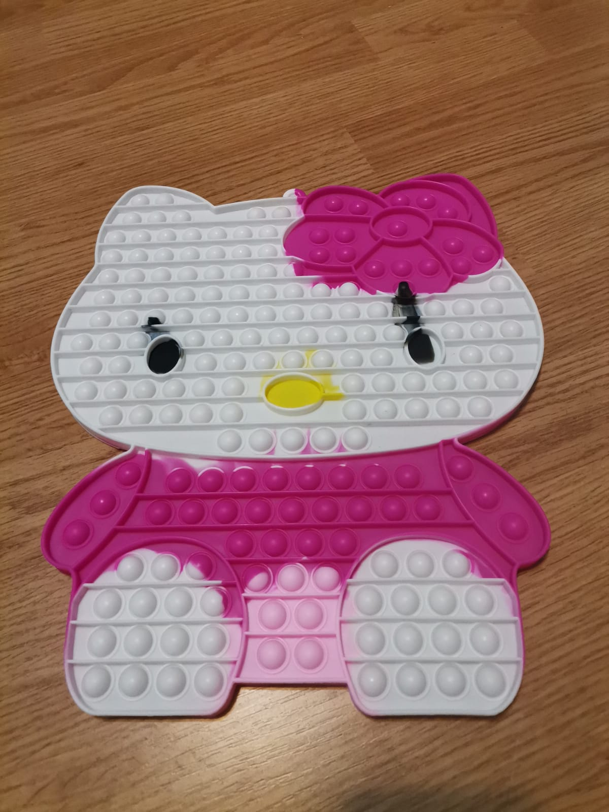 Pop it de dimensiuni mari in forma de Dinozaur Among Us si Hello Kitty in culori de curcubeu,