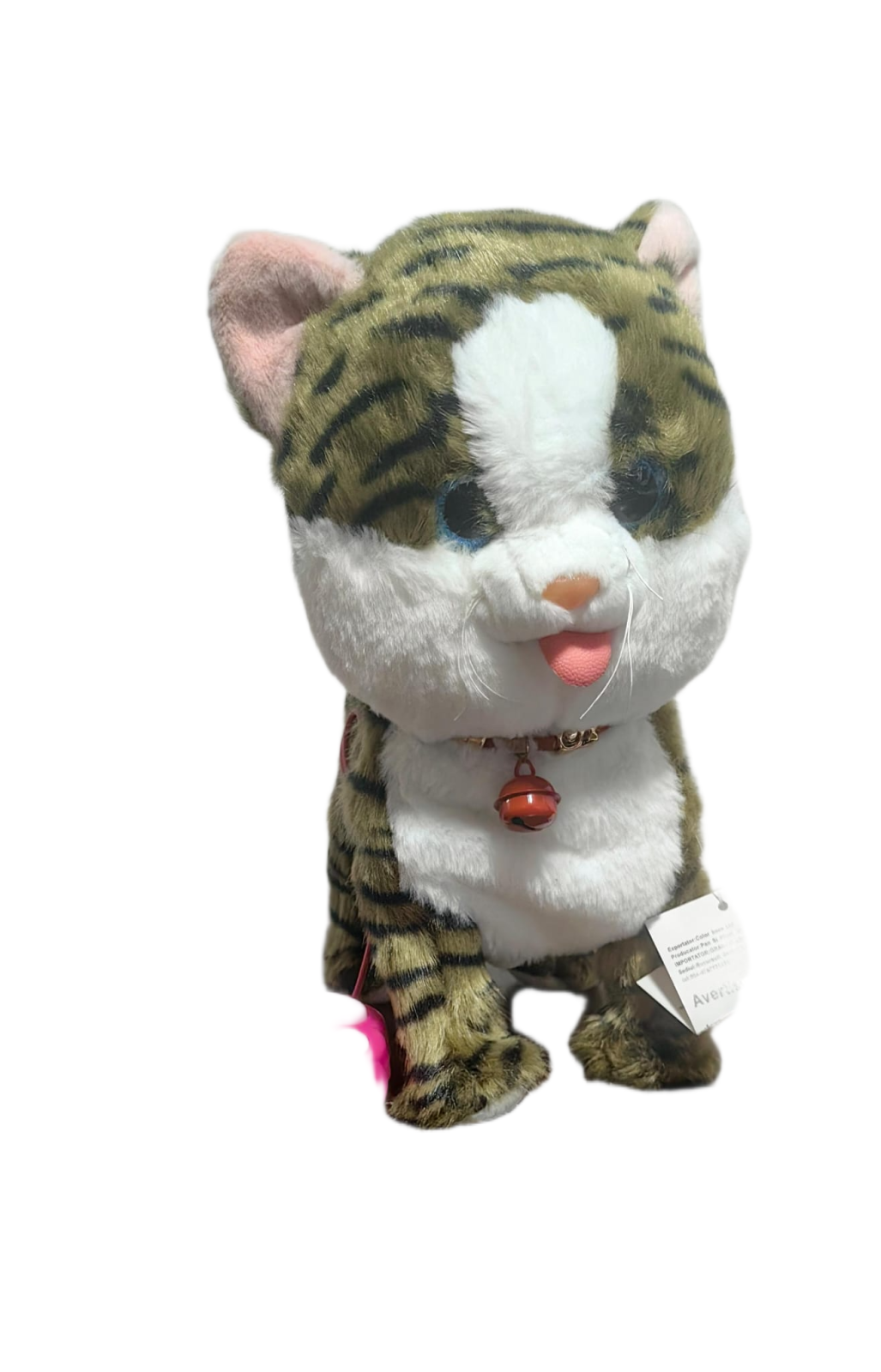 - Miaună și linge: La mângâierea capului, pisica scoate sunete realiste și linge, oferind o experiență interactivă autentică.
