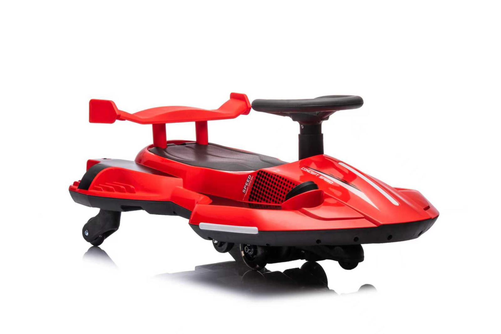 Kart electric de drift pentru copii, cu baterie 12V, motor puternic, lumini LED, muzică Bluetooth și capacitate de rotire 360°. Distracție sigură și intensă pentru micii aventurieri.