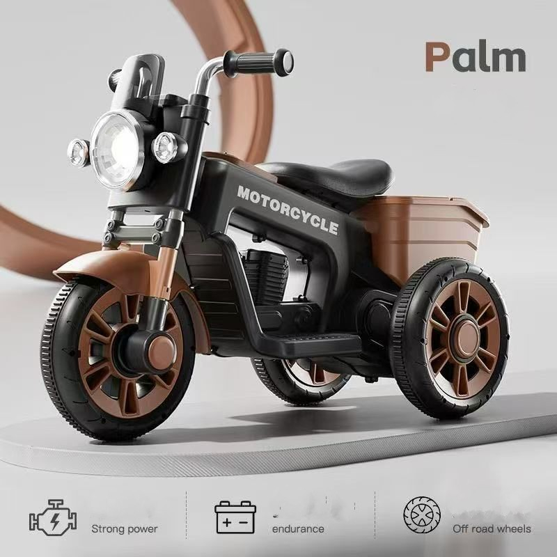 Motocicletă electrică pentru copii 12V, design retro cu 3 roți, muzică, lumini LED și cutie de depozitare.