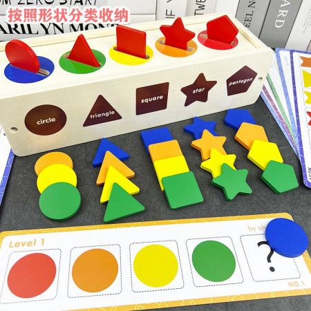 capacul cutiei este detasabil si are orificii speciale formelor geometrice