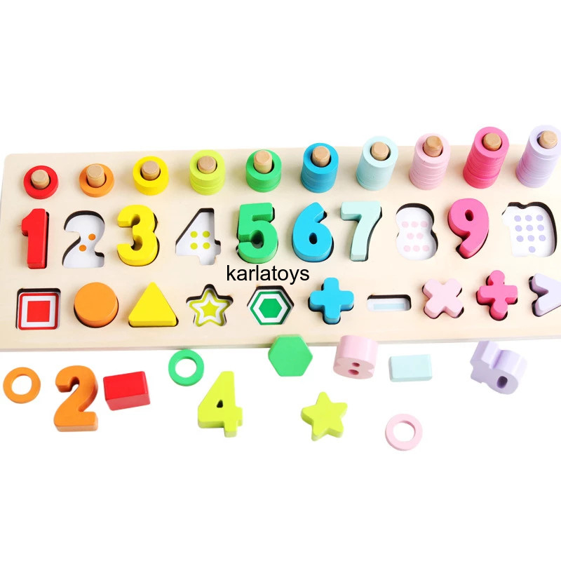 Jucarii educative din lemn pentru copii Culoare Cifre Formăe Geometrice Tabla logaritmica